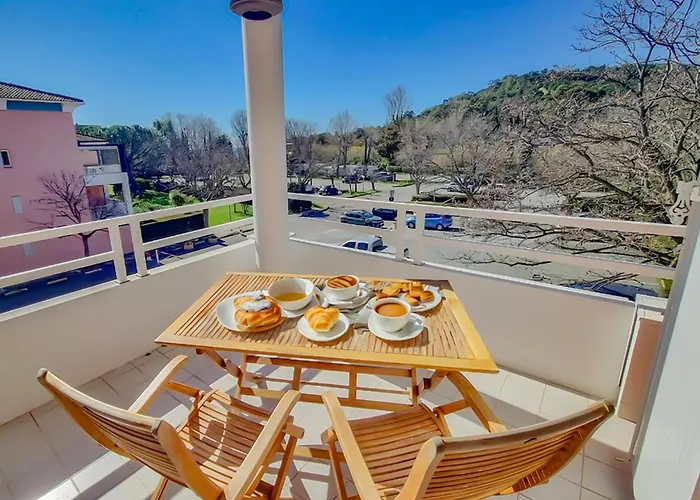 Ao ficar noo Les Arbousiers - T3 Avec Clim Et Parking Apartamento de 50 m², os hóspedes têm acesso para varanda, terraço e cozinha totalmente equipada equipados com controle de temperatura.